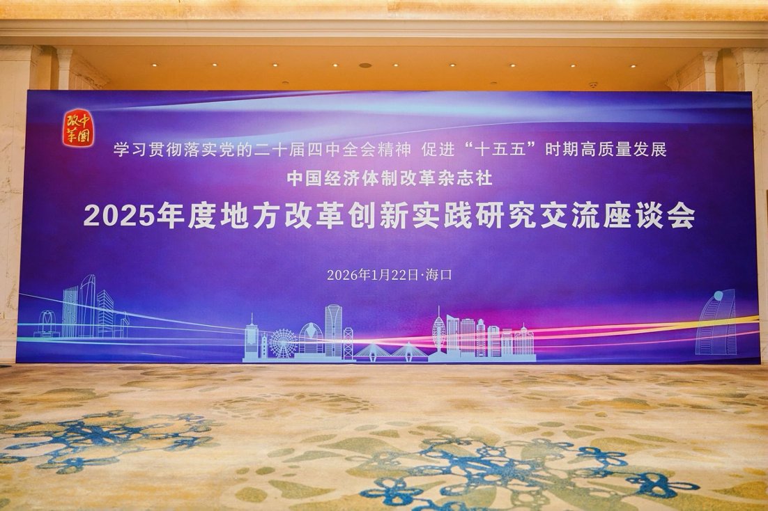 1月22日至23日,由中国经济体制改革研究会指导,中国经济体制改革杂志社主办的“学习贯彻落实党的二十届四中全会精神,促进‘十五五’时期高质量发展——2025年度地方改革创新实践研究交流座谈会”在海南省海口市召开。会议坚持以习近平新时代中国特色社会主义思想为指导,全面贯彻党的二十大和二十届历次全会精神,落实中央经济工作会议部署,深入探讨促进地方全面深化改革的经验做法,展望“十五五”时期以改革创新为根本动力,促进地方高质量发展。